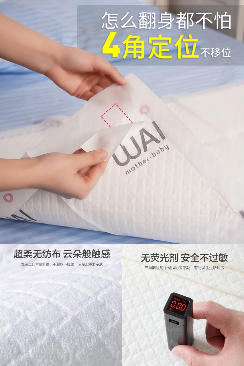 哇爱一次性孕妇产褥垫产妇专用10片,绵柔亲肤,用心选材,创新四角定位,不打滑,不位移,怎么翻身都不怕,妈妈安睡无忧!宝妈们这波赶紧薅起来!!!快抢!!