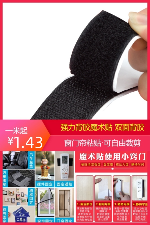 【券后价:1.43元】 【1米起】强力背胶魔术贴纱窗门帘粘贴条