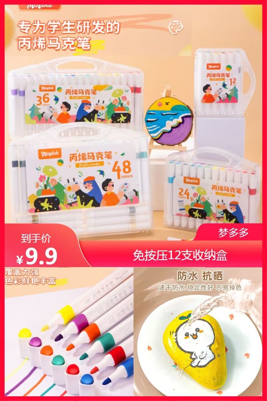 【券后价:9.9元】 稳定签到!免按压12色盒装丙烯马克笔