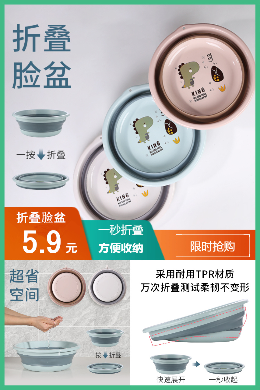 折叠设计,伸缩自如,,端拿也不费劲,带防滑圈,柔软耐磨,防治移动时把地板刮花,减少脸盆磨损。
