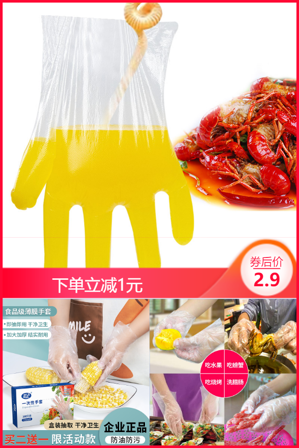 100只一次性手套,强力拉伸,轻薄服帖,加厚抗撕拉,安全无毒,防滑设计,韧性十足,多买点家里总能用得着~