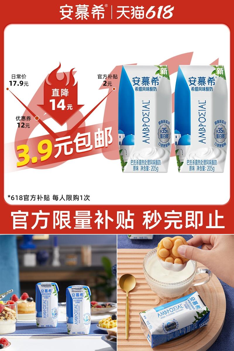 【官方补贴直降,15点结束,限时限量!!】到手2盒只要3.9元!!】安慕希旗舰店!希腊风味酸奶,甄选优质奶源,蛋白质含量多35%,口感醇厚浓郁,好喝有营养!