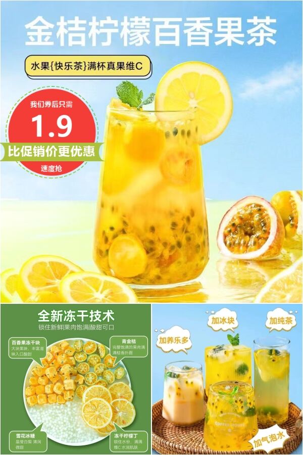 【券后价:1.9元】 官方补贴【徽春堂】金桔柠檬百香果茶包10包