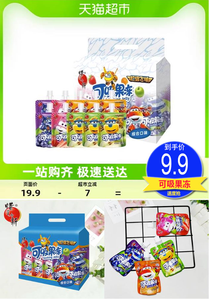 【券后价:9.9元】 包邮!蜡笔小新可吸果冻鲜Q爽超级飞侠680g