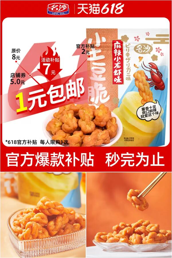 【推荐理由】:官方百亿补贴,秒杀价到手1元!!!麻辣小龙虾味/番茄味土豆麻花,多口味可选,大润发、家乐福等百家商超在售,甄选好食材,匠心熬制,甜而不腻,口感松软~满满的幸福感!【赠运费险】