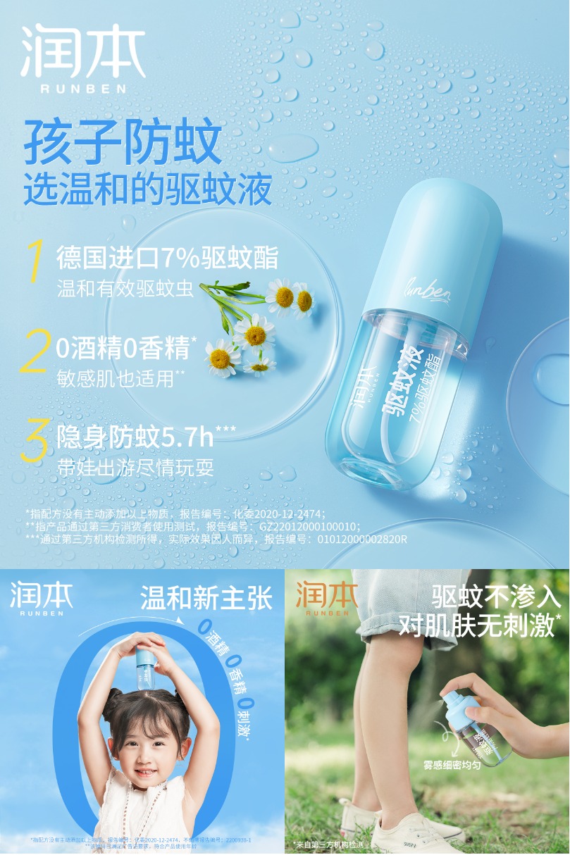 【卷后9.9】润本驱蚊液花露水65ml~宝妈必备婴儿驱蚊神器!!植物温和配方,,不添加酒精、避蚊胺,0添加超安全,真正的婴儿适用~~全家老小皆可用,有它在手,外出游玩无烦恼!