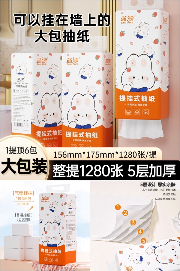 【稳定签到,1280抽】1包顶5包!!大包提挂式抽纸,健康生活从"纸"开始,无论是吃西瓜,香蕉还是玩耍等等它都用的上,省钱更省心!5层加厚!性价比hin高,学生党、打工人赶快囤起来啊!!