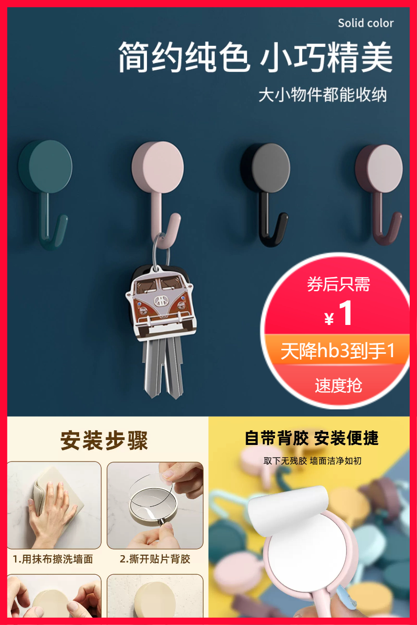 【天降红包3元,到手仅1元】免打孔安装,方便快捷,实用不损墙面,多色组合清新撞色,为你的生活加点彩,防水防潮,粘墙上挂钥匙毛巾都很方便!