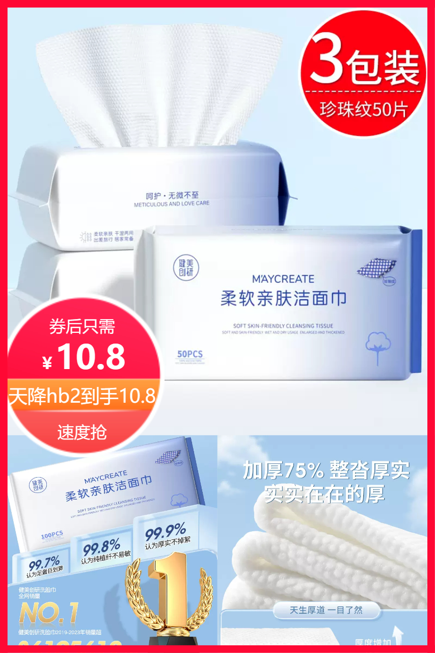 【天降红包2元,到手10.8元】洁面、卸妆、擦拭、安全卫生健康。超大包,干湿两用,不含荧光剂,无刺激不过敏,母婴适用!