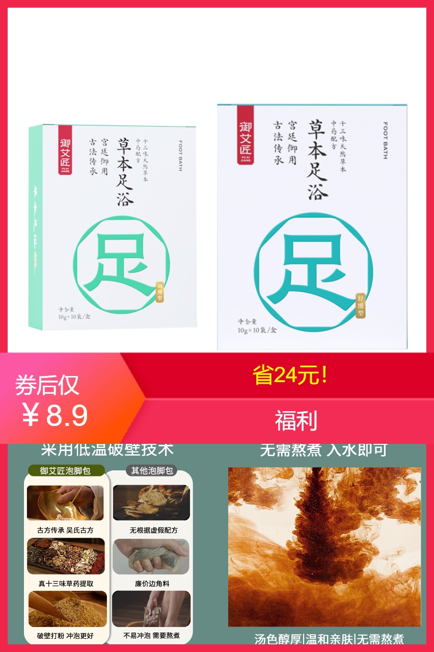 【券后价:8.9元】 【翻倍!!!】御艾匠艾草本艾叶足浴包*30
