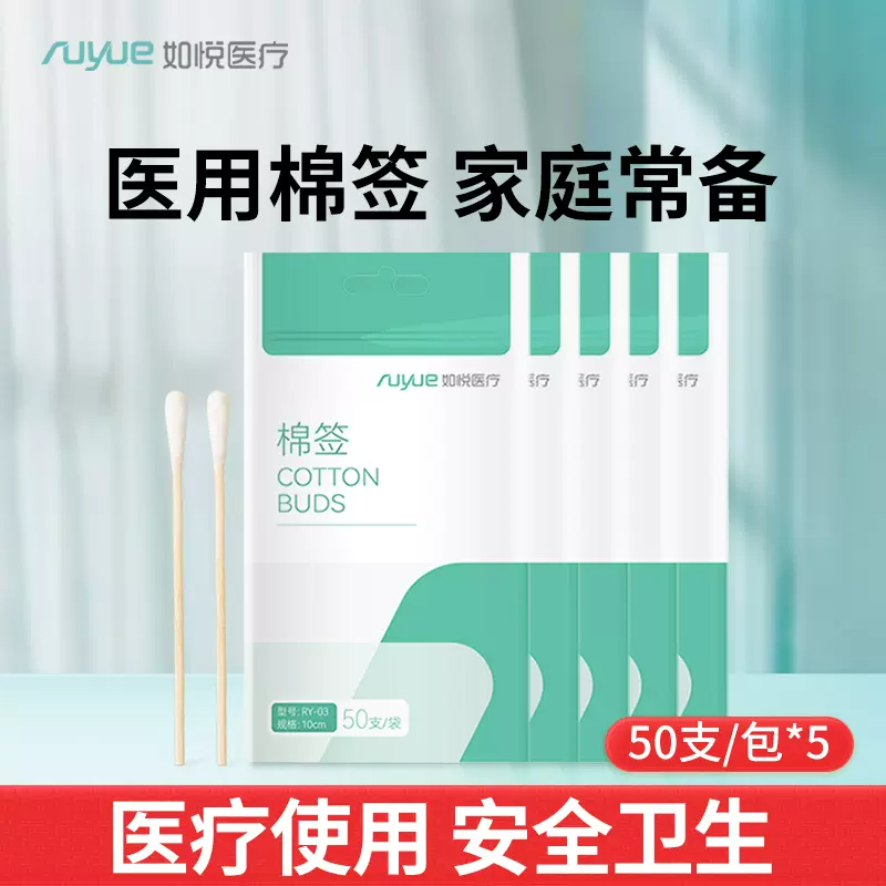 【券后价:5.9元】 【首单+签到】如悦医用棉签5包共250支