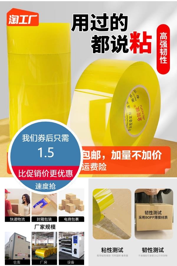 【券后价:1.5元】 【天降到手1.5元】透明黄打包胶带2卷100米