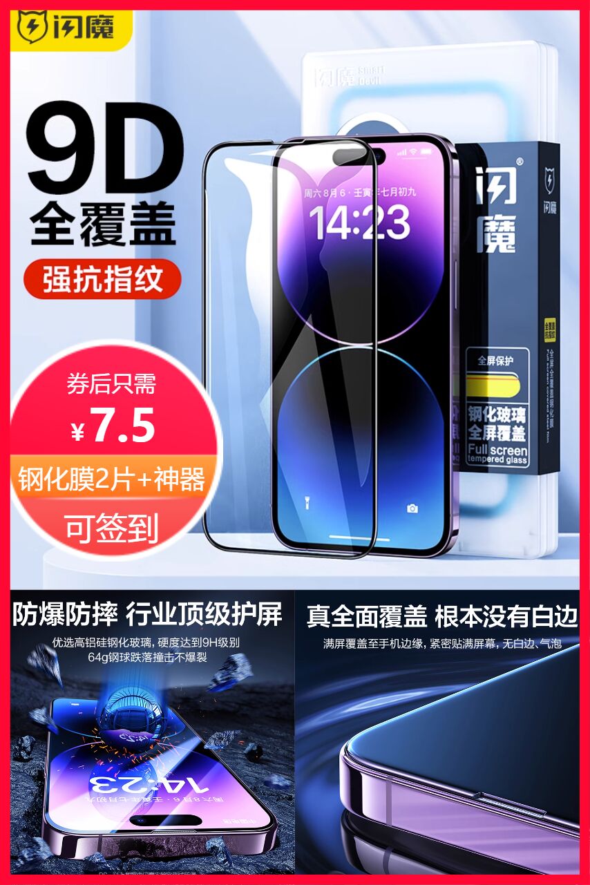 【券后价:7.5元】 【稳定签到】闪魔苹果钢化膜2片+神器