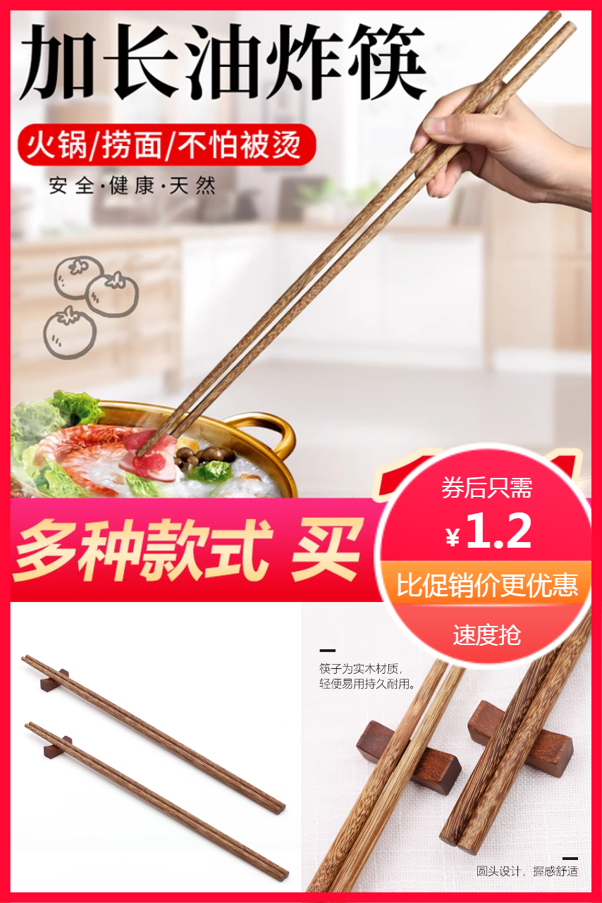 【券后价:1.2元】 【天降到手1.2】3双32cm加长筷子火锅油炸