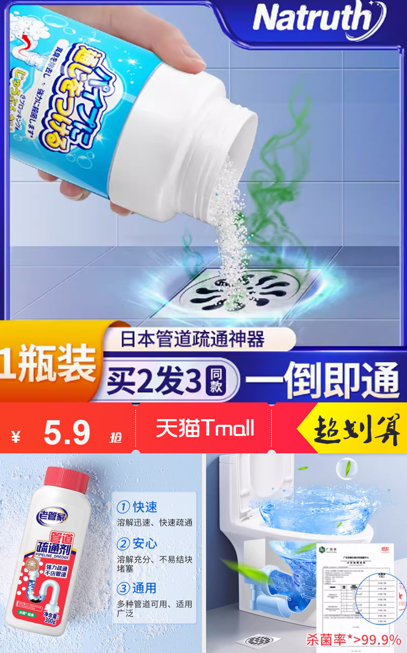 【券后价:5.9元】 【天降到手5.9+签到】老管家管道疏通剂200g