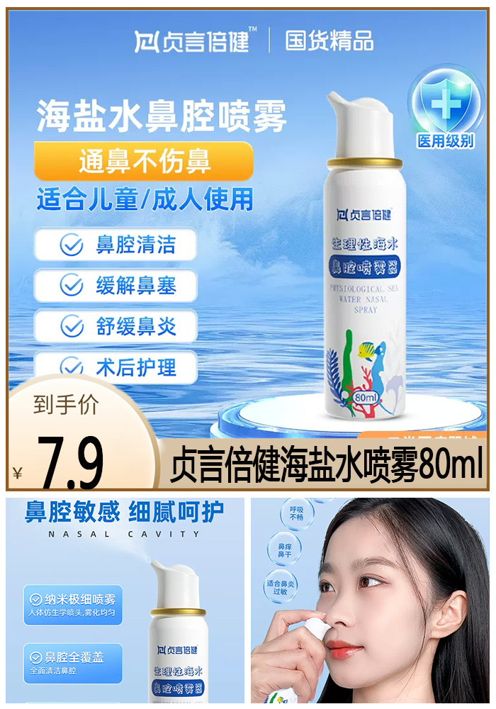 【券后价:7.9元】 【贞言倍健】海盐水喷雾80ml
