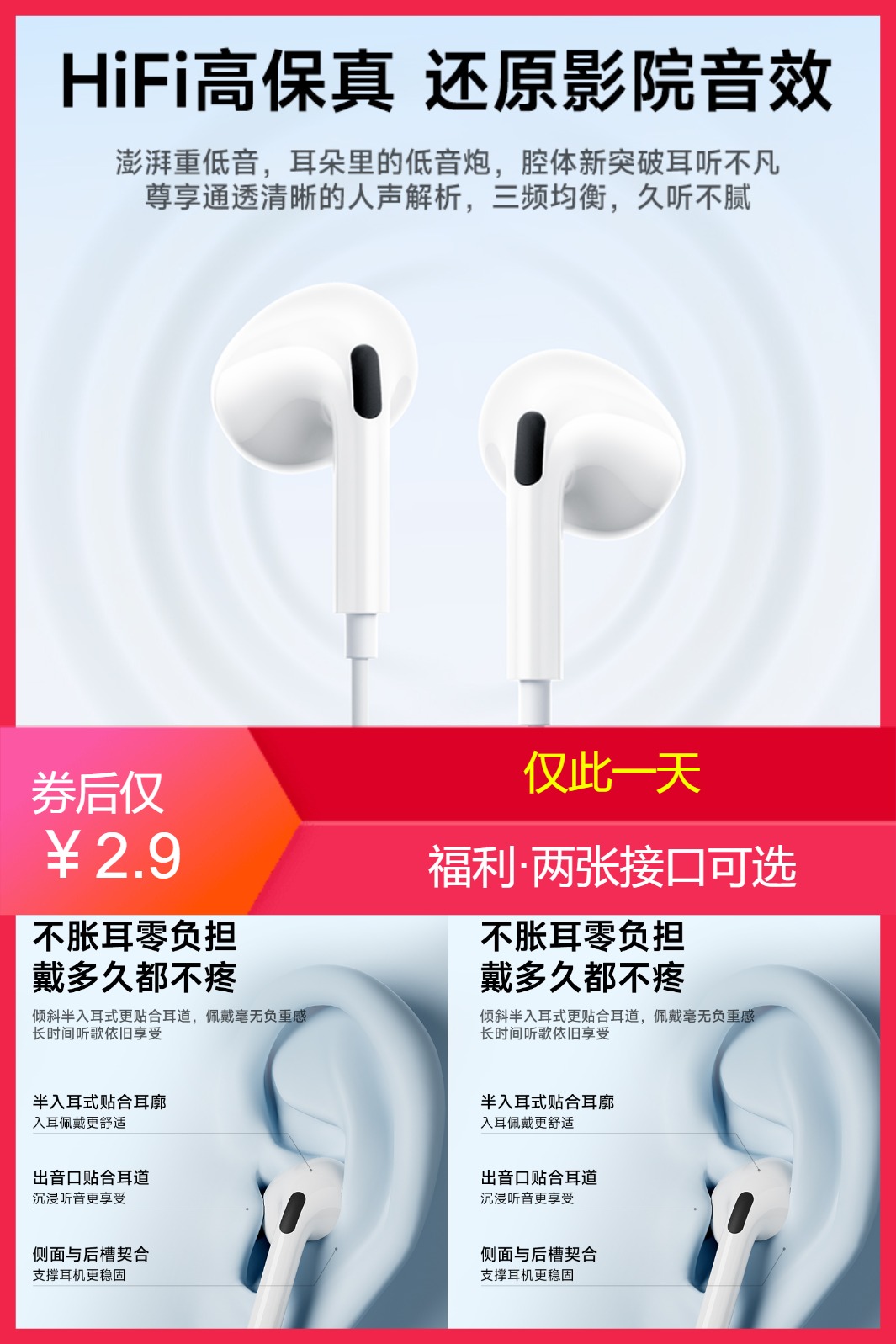 【券后价:2.9元】 2款可选【品存】有线入耳式耳机