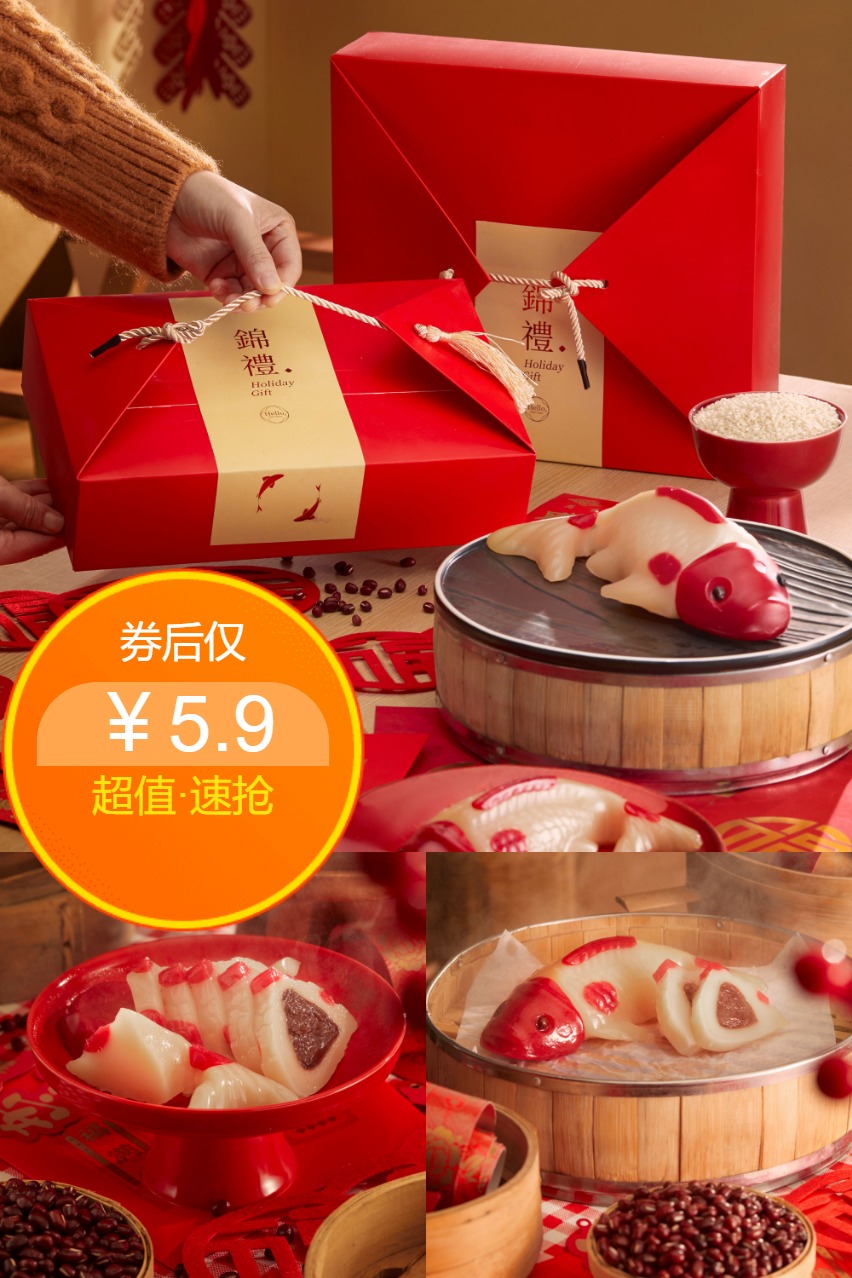 【年糕锦礼】万寿斋年货年糕礼盒装,豆沙年糕鱼礼盒,送礼定制团购,礼品年糕鱼,送礼佳品。