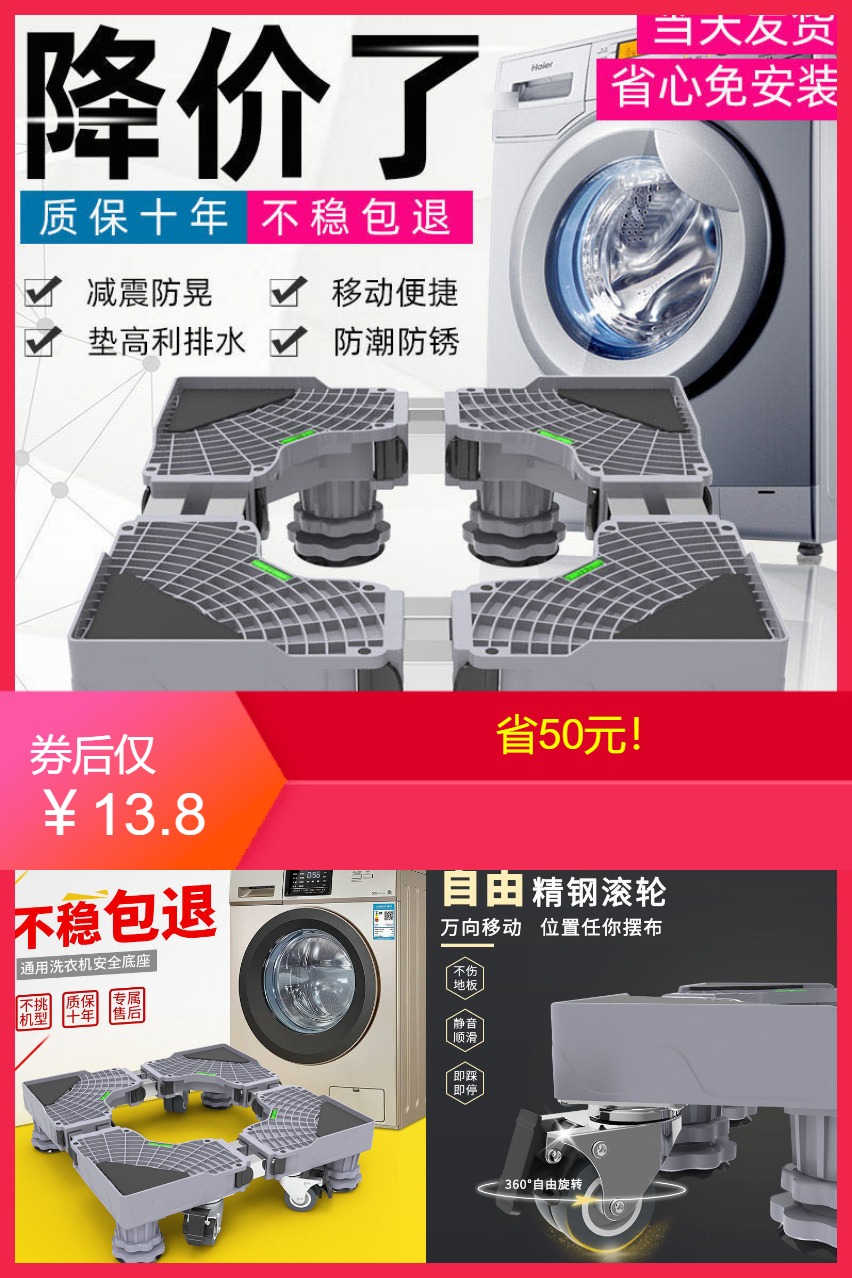 底部安装加强版万向轮胎易挪动防生锈,表面加厚可承重超达2.5吨,内嵌防滑吸盘解决甩衣乱移位,一拆即用免安装超方便哒!