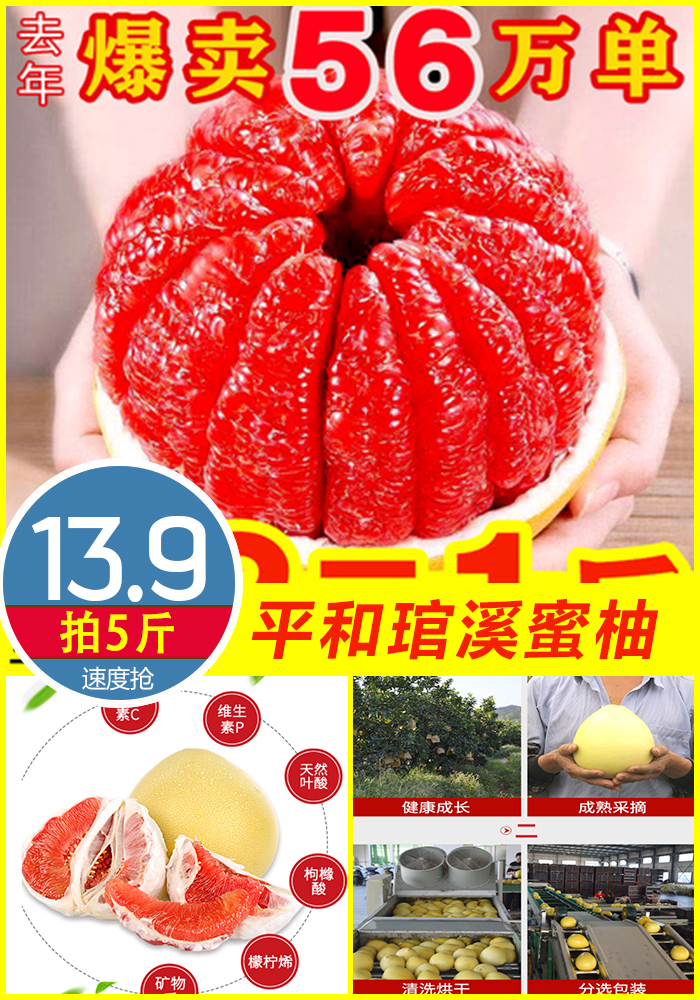 【去年爆卖56W+!】福建平和红心蜜柚,足斤足两,好品质看得见!生态农家种植,自然生长成熟!果形新鲜饱满,柚香浓郁~果大皮薄,红润晶莹,每一口都是美味大满足!
