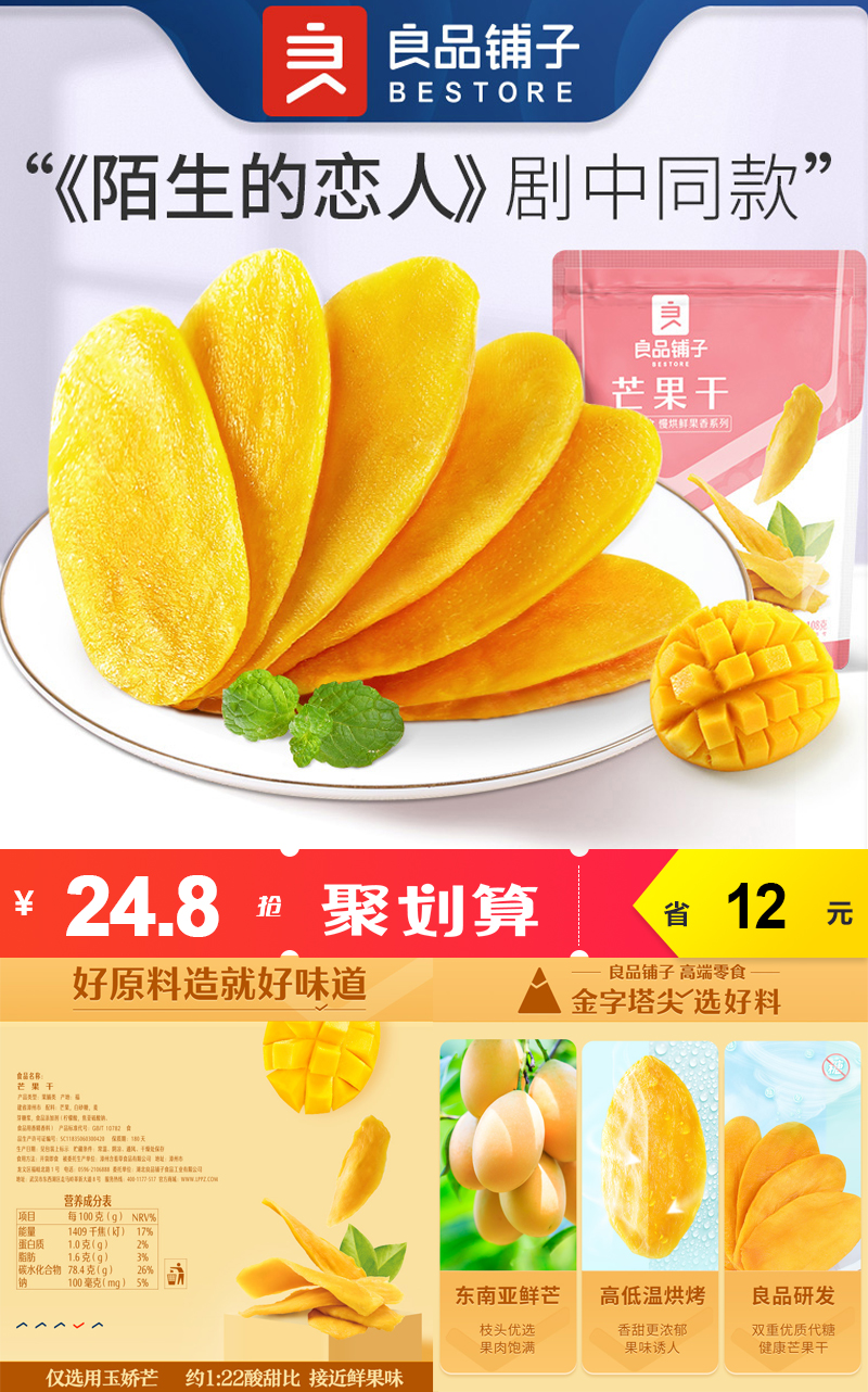 【券后价:19.8元】 【良品铺子】芒果干108gx3袋