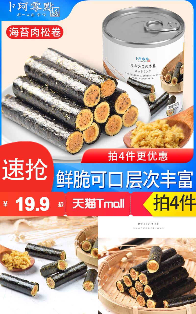 【券后价:19.9元】 【拍4件】卜珂零点肉松海苔卷共400g