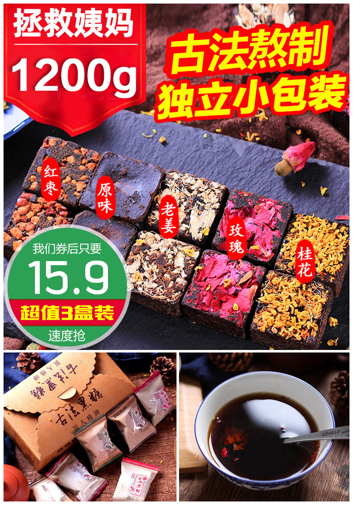 【快快快,神福利!拍一件发3盒共1200g!】云南地道古法熬制,女人的贴心好闺蜜!五种口味,独立小包装!呵护生理期,暖宫暖胃补虚,秋冬暖暖的来一杯,浑身都舒坦!姨妈期必备神器啊~