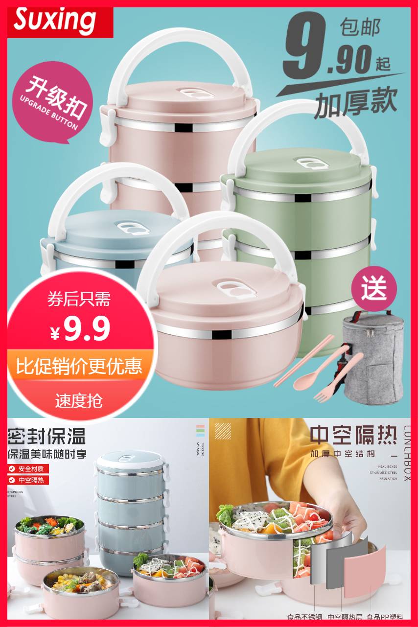 【亏出翔!找不出第二家更便宜的!】高颜值有格调~食品级不锈钢,密封保温强,中空隔热防烫,分层设计,美食不串味~时刻温暖你的胃~【赠运费险】