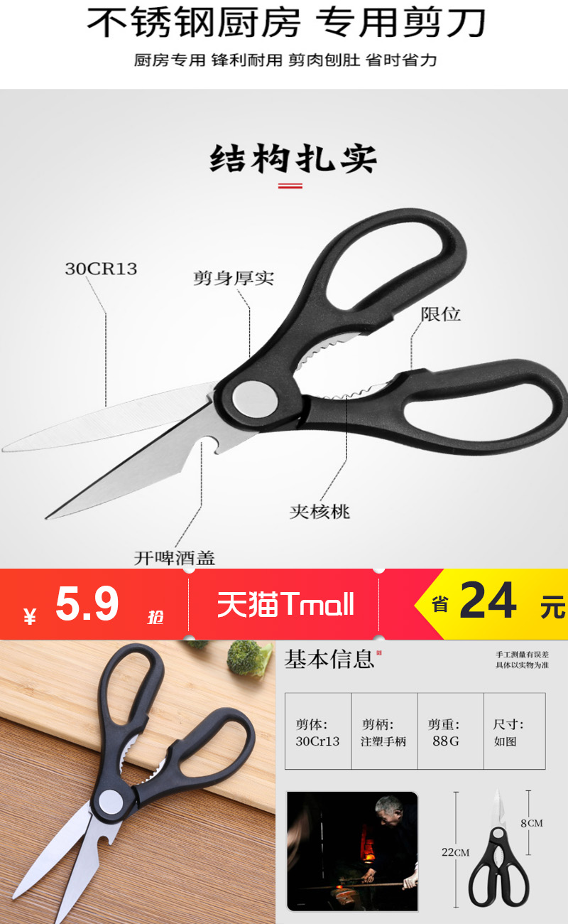 【券后价:5.9元】 【禾易】厨房剪刀1把坚固耐用